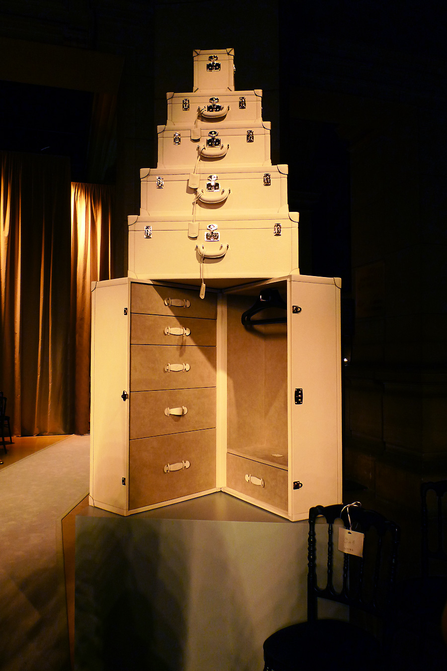 Tout le décor, les petites tables bistro, les chaises Napoléon III, les grands rideaux, et ces valises en équilibre, était élégant, même s’il n’y avait pas de carrousel (je vous en parle bientôt de ce manège enchanté Vuitton, promis, mais là nous sommes encore chez Loewe !).