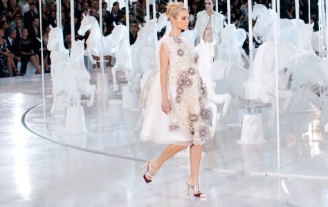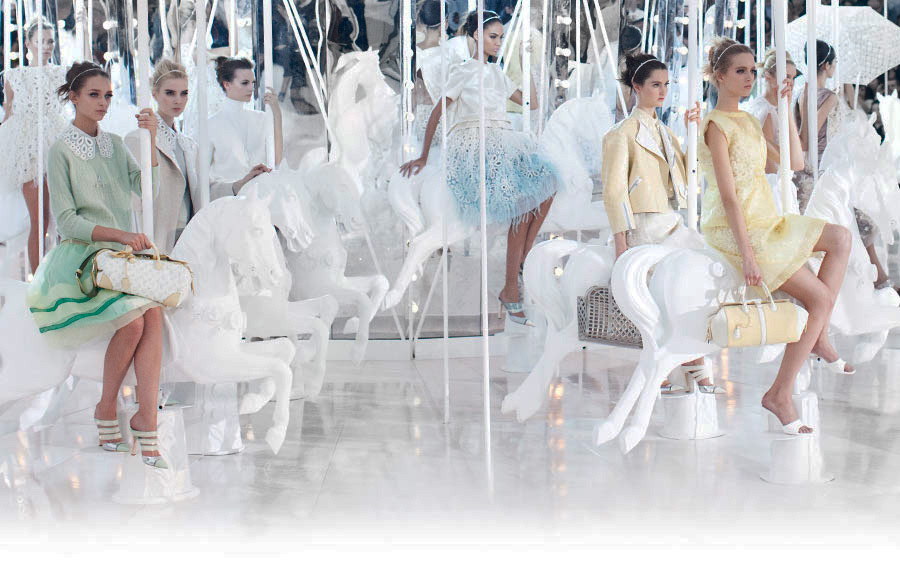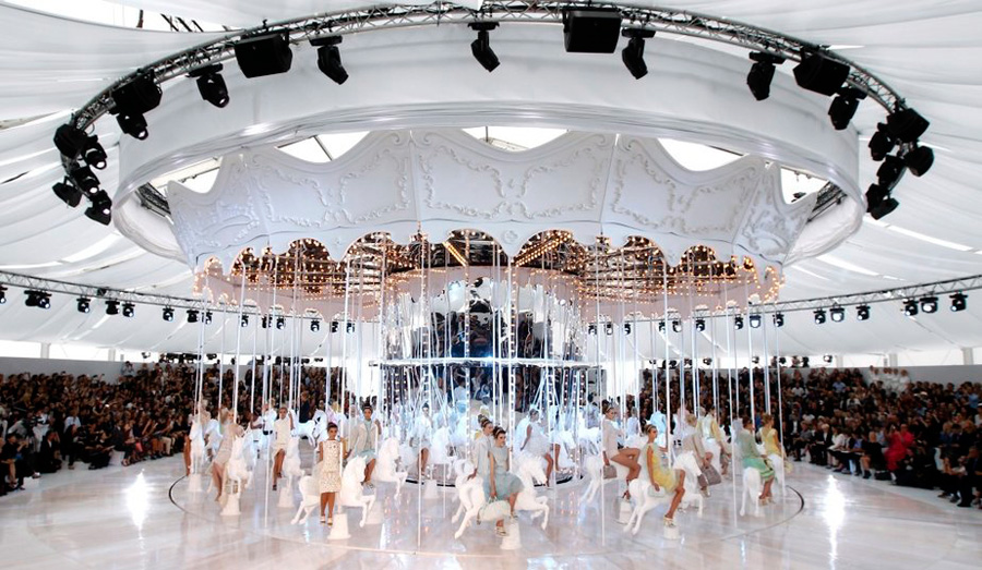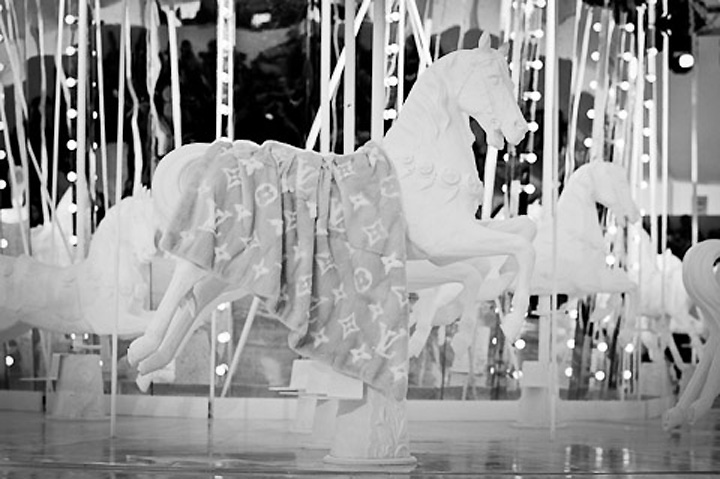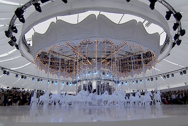 Vous avez compris : j’ai trouvé moi que cette métaphore du manège enchanté représentait parfaitement les cycles des défilés, le petit monde ridicule, pathétique, futile, artistique, léger, Beau – tout tourne encore – qui s’agite, au centre de l’univers, pour quelques instants de plaisir pur, un orgasme.