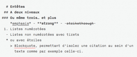 Pas de préférences, pas de réglages, le formatage du texte se limite au minimum, et recoupe les options disponibles en HTML:
