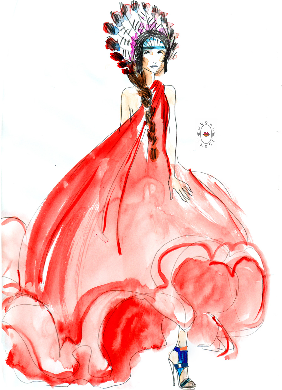 J’y accumule les news, les images que m’envoie Charles-Henry, les concours de gâteaux au chocolat (les veinardes goûteront au Ritz ce week-end…) comme les photos sublimes d’une robe rouge qui littéralement s’envole, de face comme de profil… ou le croquis inspiré d’Eudoxie la fée.
