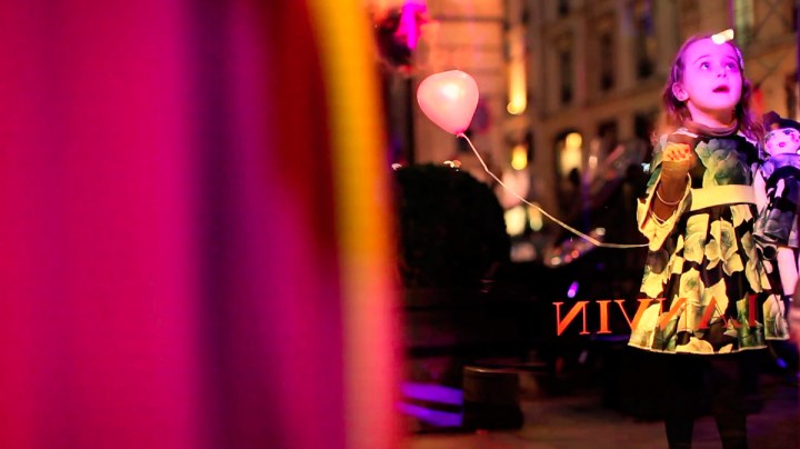 Une jolie petite fille, un homme à l’allure soignée et deux fashionistas, tous vêtus en Lanvin, flânent devant les vitrines encore vides de la plus ancienne des maisons de couture.