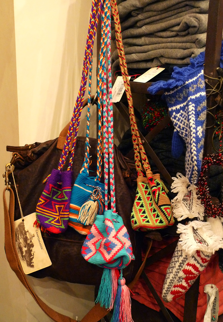 Aussi ces petits sacs qui viennent de débarquer, des bourses tissées à la main, en Colombie, qu’on appelle Mochilas. Elles existent en plus grand et arrivent au printemps !