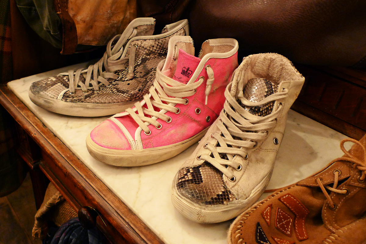 It-shoes ? Baskets Leather Crown, en rose ou python, qui cachent 4 cm de compensé dans leurs talons, sans vous faire les pieds orthopédiques des sneakers Isabel Marant (évidemment que je dis ça car je ne fais pas partie des veinardes qui les possèdent… mais tout de même, ces pythonnées me semblent soudain bien plus désirables, et tellement moins communes).