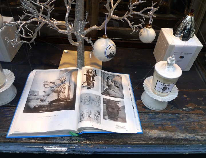 Les vitrines sont toujours exceptionnelles, mais il faut entrer pour comprendre la finesse du verre et la légèreté de la céramique, la patine des meubles cérusés, les motifs des cahiers et même le parfum des bougies… « Odeur de Sainteté », il me la faut !