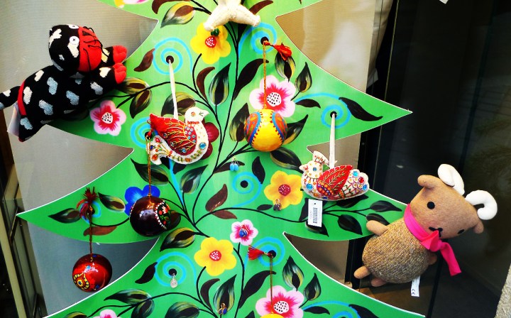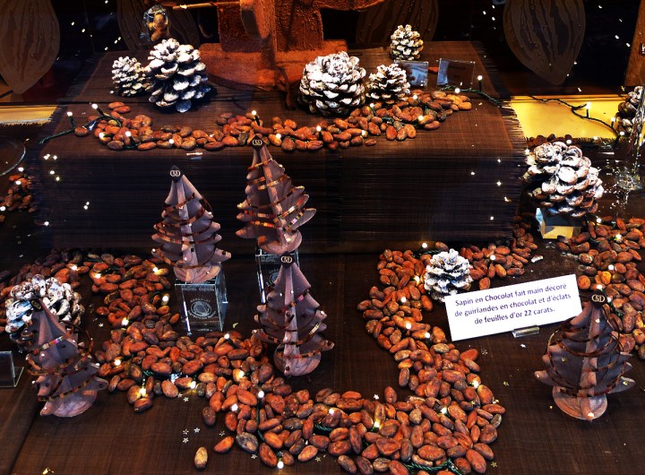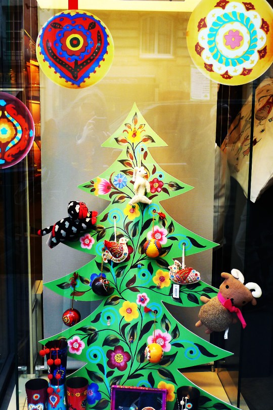 Mais maintenant plus d’excuses pour ne pas s’extasier devant la minuscule vitrine de Fragonard, exemplarité de déclinaison du classique de Noël, sapin vert en tête et en bois peint.