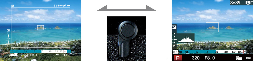 4. Enfin, Le viseur mixte, optique ou électronique, offre le meilleur des deux mondes ( à mon avis ): la taille compacte propre à la visée télémétrique, et la possibilité de visualiser ce qu’il y a autour du cadre, avec la surimpression d’informations utiles par voie électronique, ou la bascule en mode 100% digital, et la visualisation exacte de l’image capturée par l’objectif ( à la manière d’un reflex ).