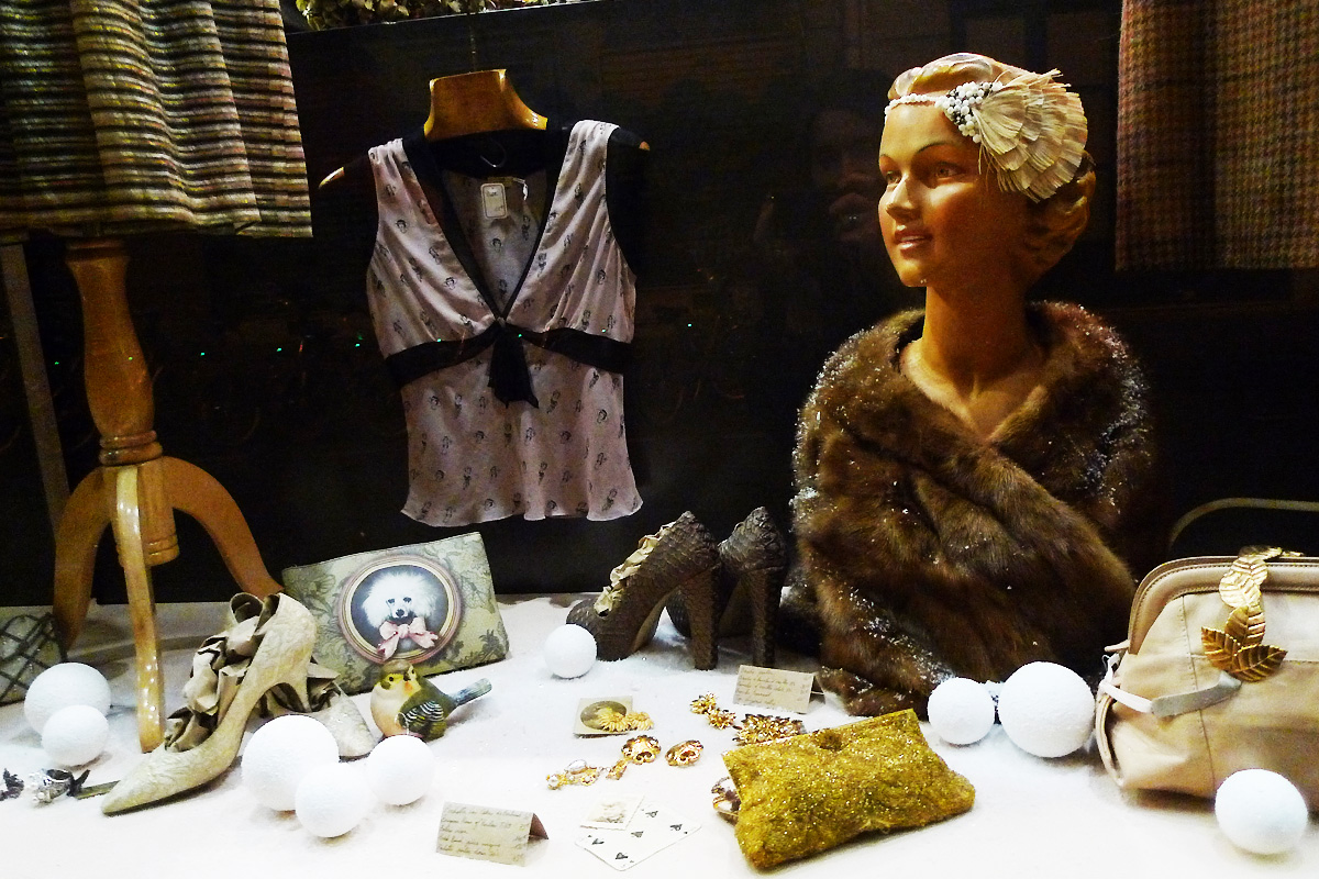 La longue cape Burberry digne de Sherlock Holmes dans le fog londonien était le clou du spectacle (trop grande… j’en aurais pleuré), mais où que l’oeil se pose, un détail perlé, un bijou ciselé, la jolie écriture sur papier jauni, tout me plaisait.