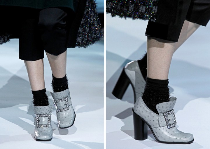 PS : Soyons réaliste et pragmatique 2 secondes. Jamais je n’aurai les moyens d’un chapeau ou d’une veste… Il ne me reste plus qu’à attendre l’hiver prochain en fantasmant les merveilleuses chaussures à boucles carrées, en gris, autruche, avec l’espoir fou d’au moins les essayer, en aristocrate de pacotille, au Palais Royal.