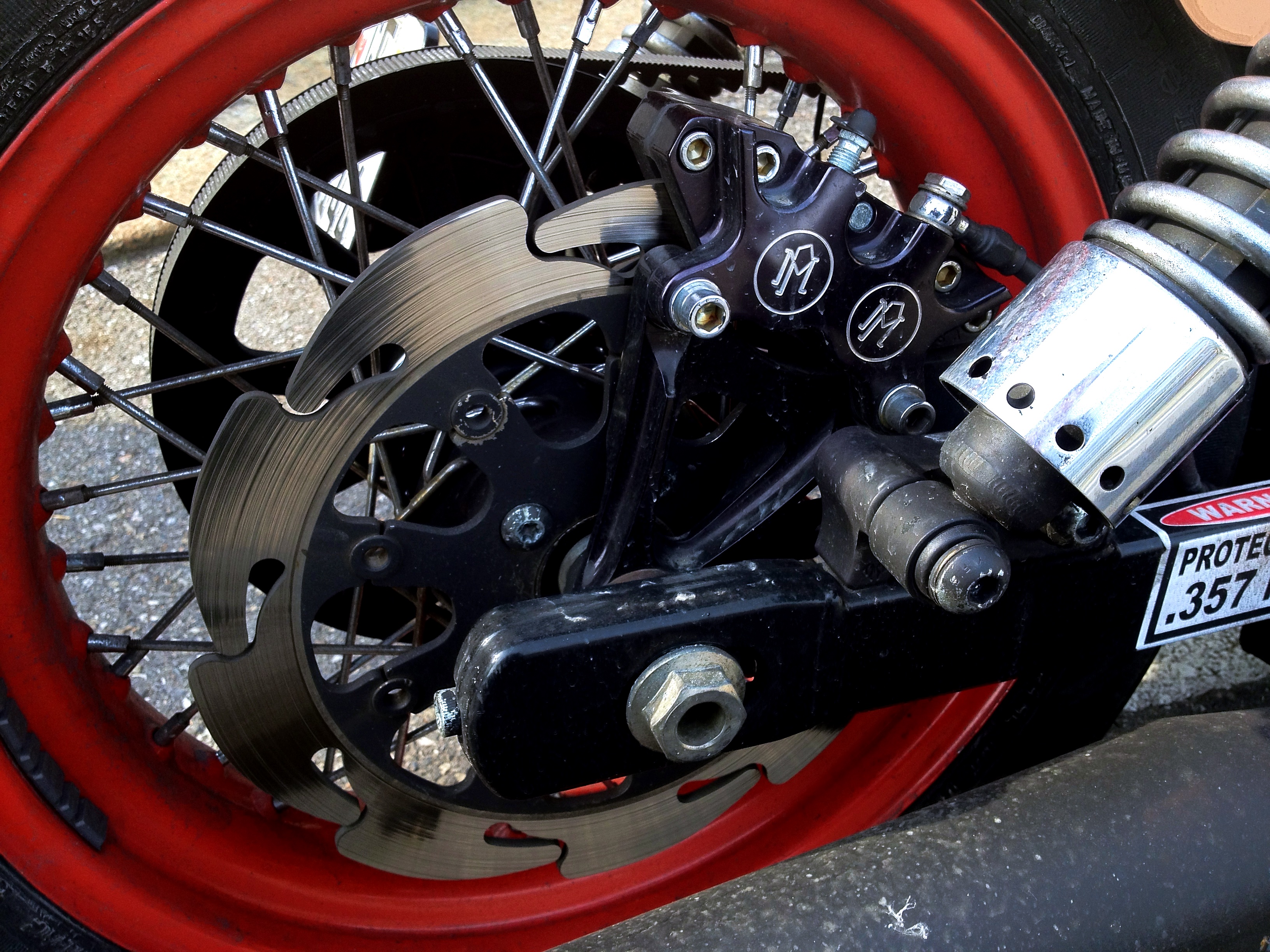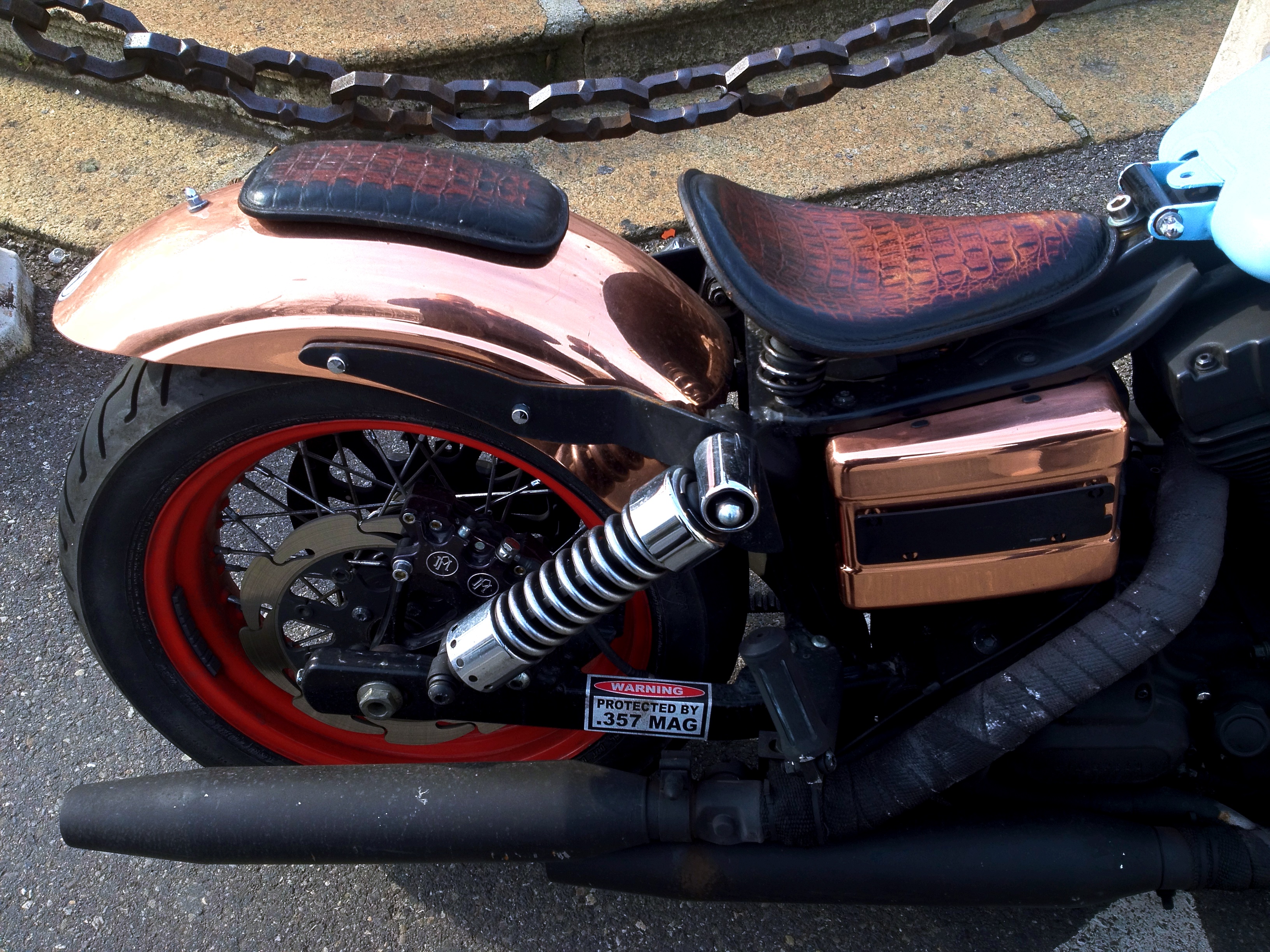 J’ai aimé la patine du cuir, l’air faussement négligé des parties noir mat, trahi par le soin du détail dans les disques de freins et par la brillance du cuivre…