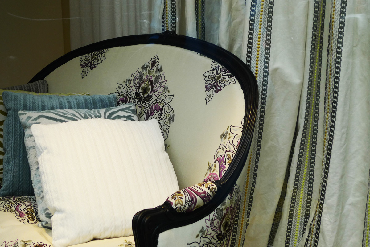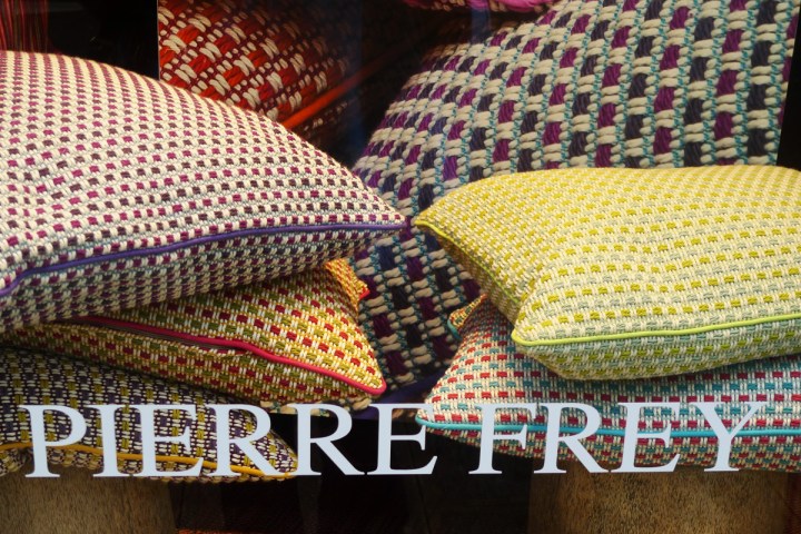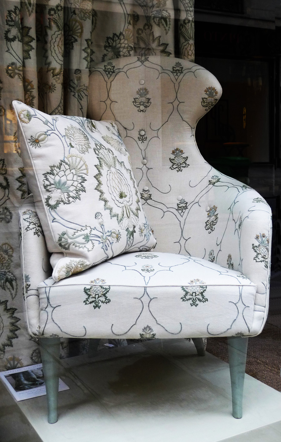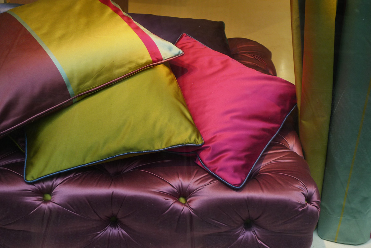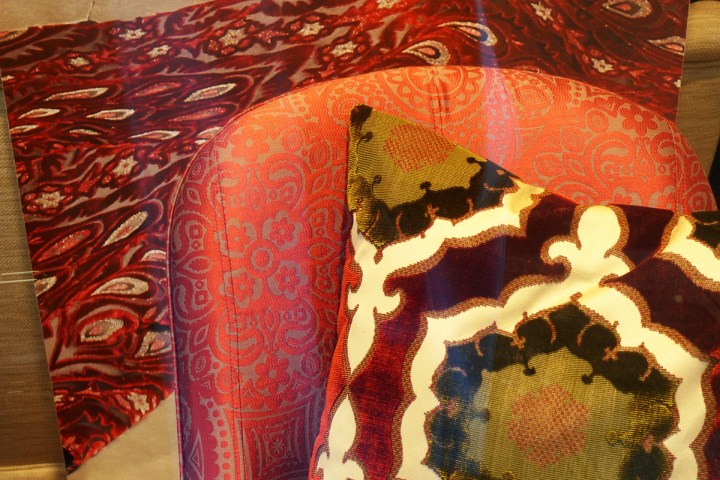 Nous sommes un peu dans l’Avenue Montaigne de la tapisserie… Ici, on admire des fauteuils, des coussins, le reflet chatoyant d’une assise… quand là-bas on se pâmait devant une robe ou un sac à main.