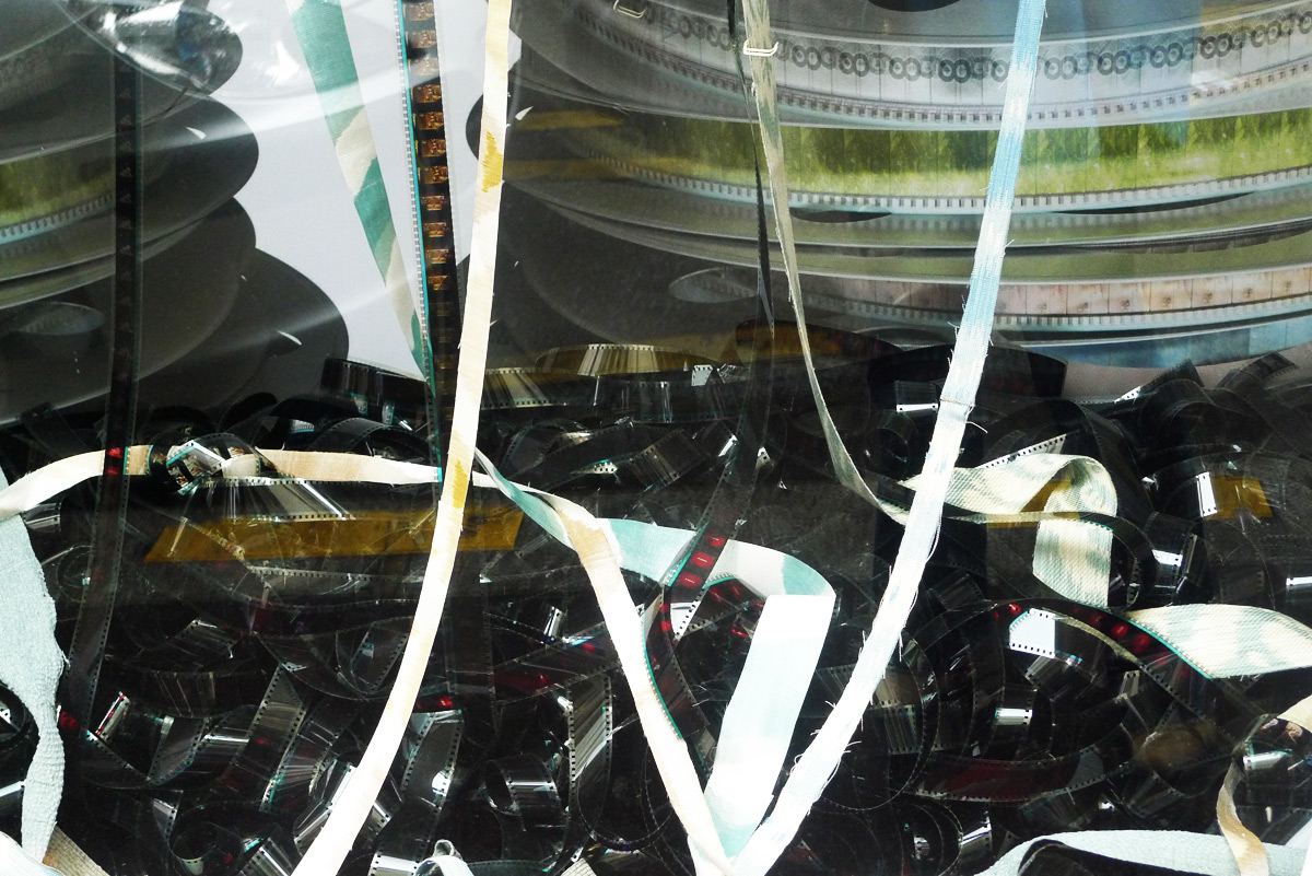 Cependant le thème qui semblait de rigueur cette semaine était celui du cinéma, d’abord illustré par des rubans devenant pellicules, rouleaux et bobines entassés d’images en négatif ou de satin lacéré…