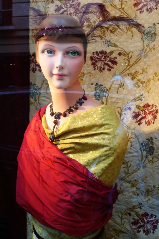 D’autres tentent des trucs, habillent des mannequins de tentures ou vrais costumes, aménagent des décors harmonieux, détournant leur matériau de base, lui ajoutant ci un oiseau en cage, là un bijou, des plumes, pour mieux attirer l’oeil du chaland.