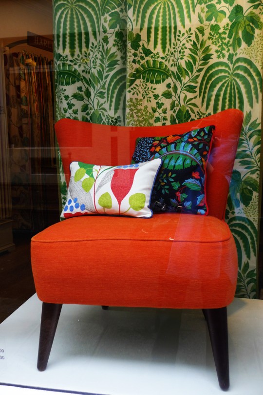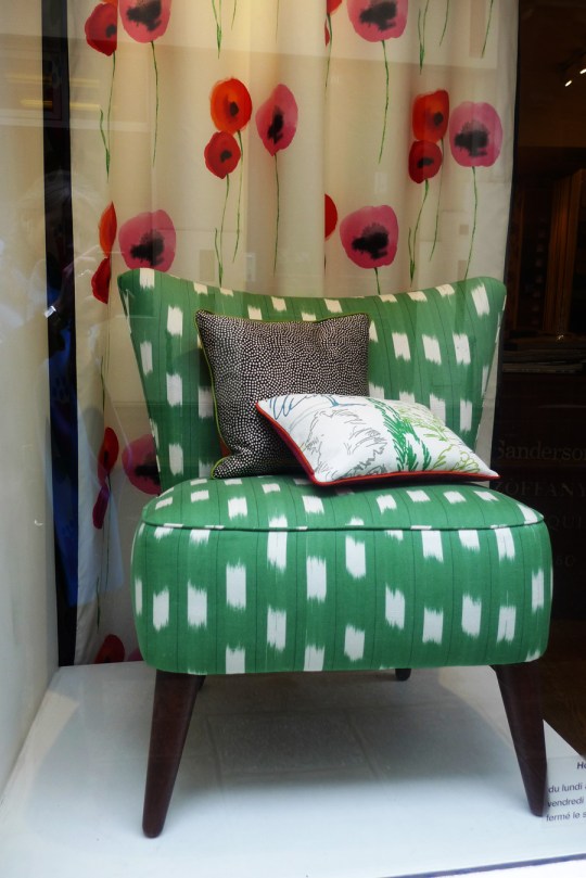 Moi j’ai toujours l’impression d’y être en Angleterre (probablement car je ne suis jamais allée en Angleterre). Ce raffinement des étoffes et des enseignes, le souci du détail, les imprimés fleuris qui durent des siècles ou le moiré d’une soierie précieuse… je ne sais pas… Ça me donne envie d’entrer prendre le thé avec scones ou sandwiches au concombre !