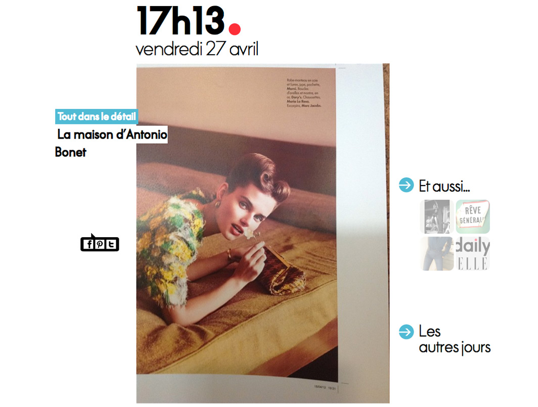 Du léger, des couleurs joyeuses, un ton décalé, une pincée de pub ciblée, du blanc tournant qui fait du bien aux yeux… et beaucoup, beaucoup d’idées, de bonnes idées. Un bonus : on nous demande les nôtres, pour les intégrer au fil de la journée et peut-être recevoir le ELLE d’Or. Alors à vos marques ! C’est participatif.