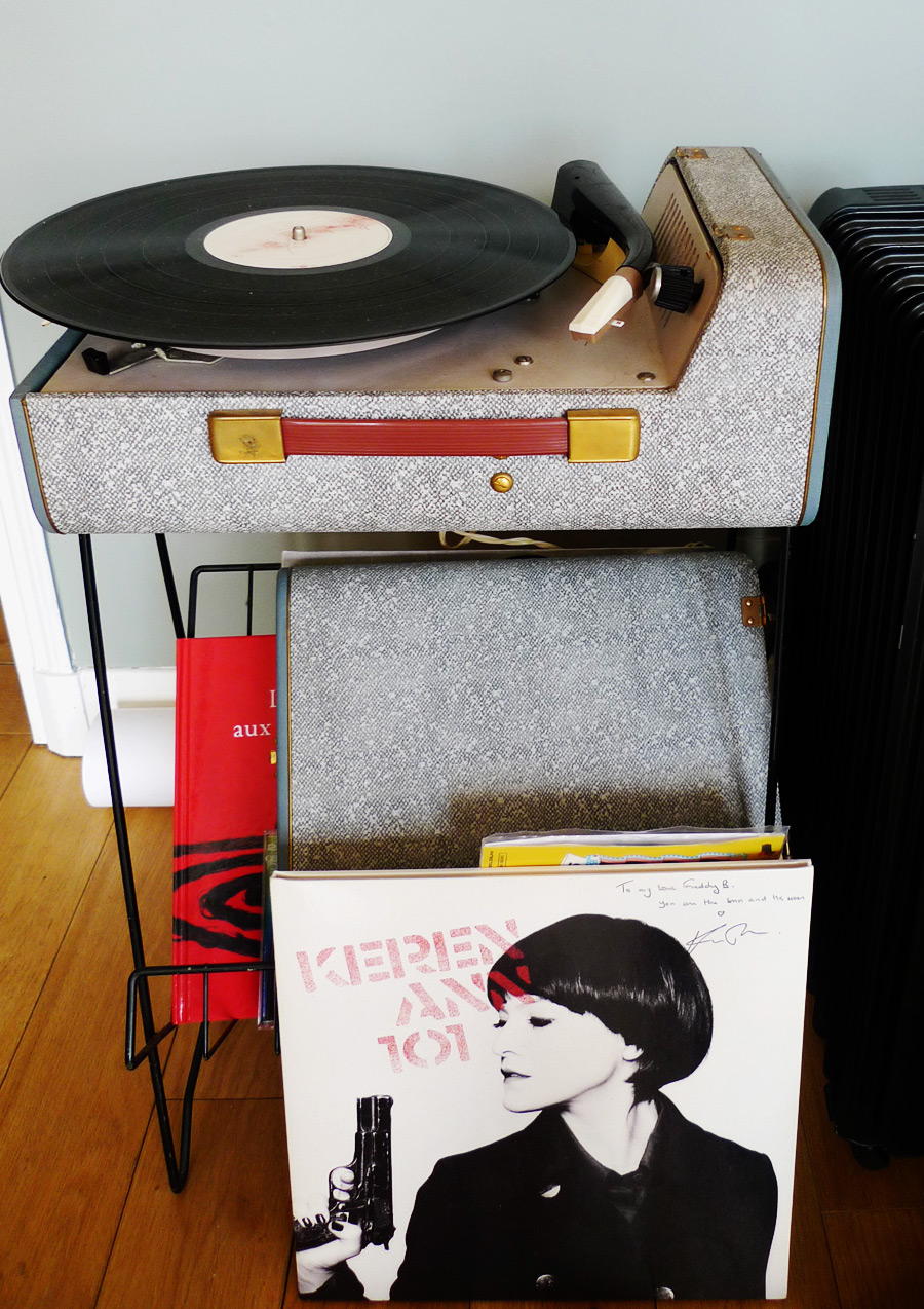 J’adore cette petite visite guidee de son appartement très cool! Ca devait être génial se faire coiffer au son d’un vieux 33t! Et je suis tombée en adoration devant a peu près toutes les coiffures avec foulard de son pinboard.. que j’essaie d’agrandir au max!