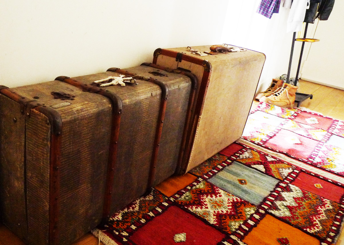 Petite visite donc. Dès l’entrée, on sent qu’il est en transit. J’ai adoré le tapis volant retenu au sol par les valises chinées.