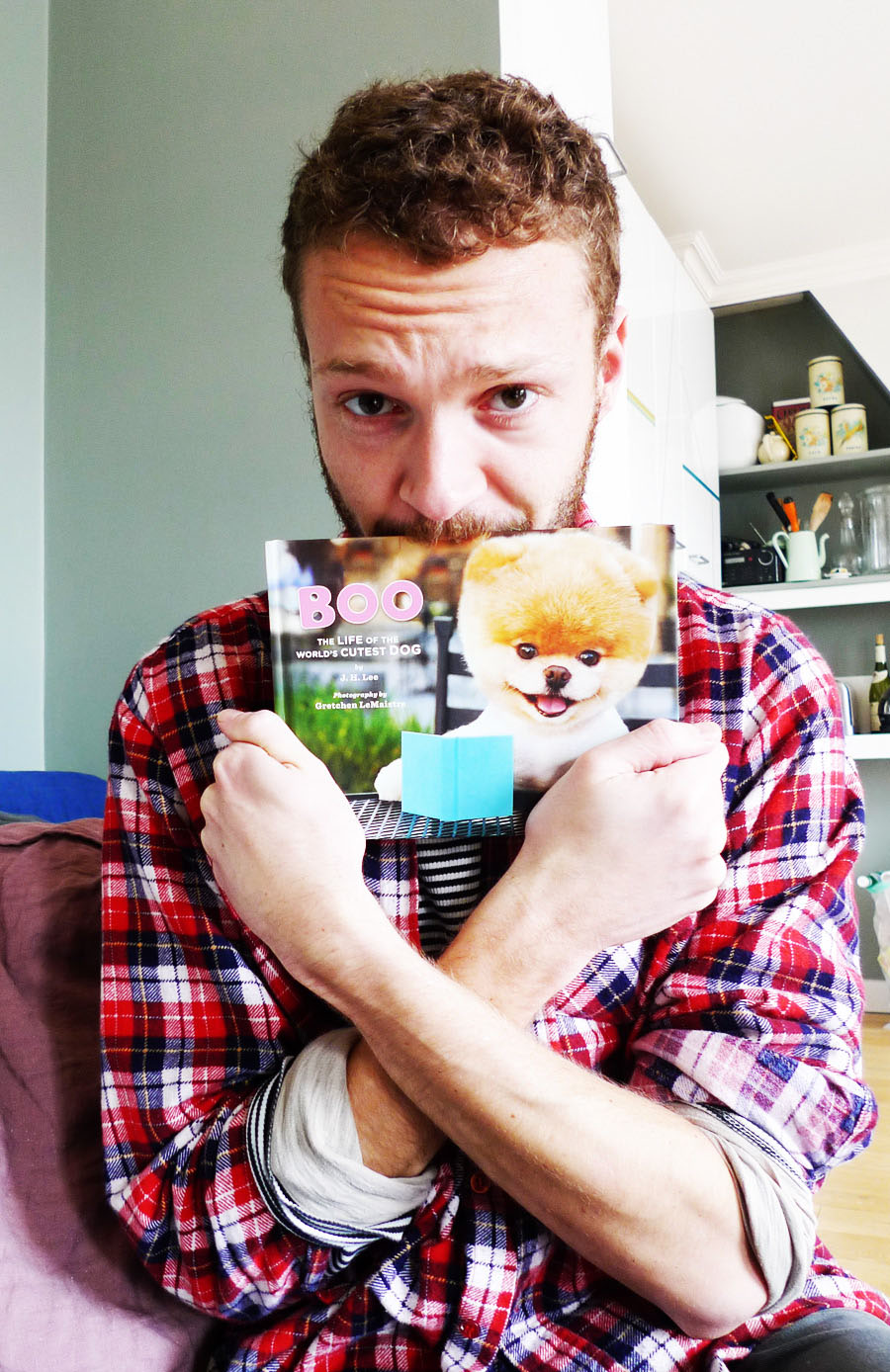 Je lui ai offert le livre de Boo, le petit chien le mieux coiffé du monde dont Fred est fan absolu, sachant qu’il y avait un risque pour que je me retrouve avec sa coupe quelques minutes plus tard…