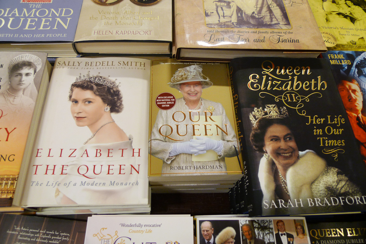 Parmi d’autres choses dont je vous parlerai prochainement, j’ai passé un moment avec Lancelot (inconditionnel de Ma’am depuis de longues années) à feuilleter des livres dans le rayon intitulé « Royals »