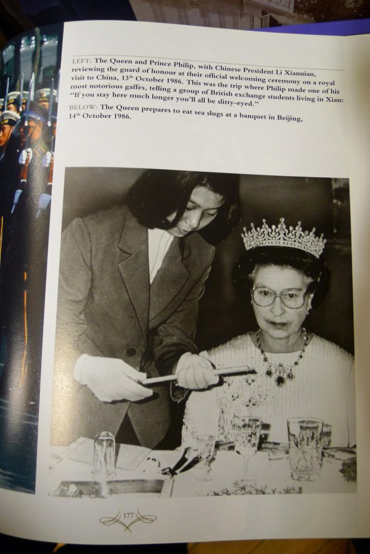 Une dernière image, décalée : la Reine, à Beijing, s’apprêtant à avaler une « limace de mer »… Son visage trahit à peine son probable désarroi. Il me semble que c’est là une preuve de plus, s’il en était besoin, de la difficulté de son statut, de sa volonté farouche (et résignée) à embrasser son destin… ainsi que de sa grande bravoure.