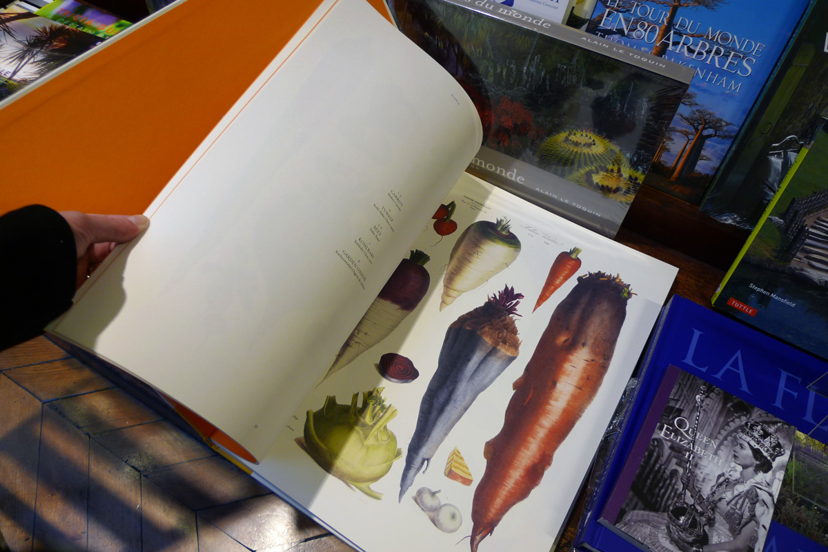 Et ce catalogue de gravures potagères est un délice à feuilleter, même si avouons-le, son volume ne le rend pas pratique comme livre de chevet…