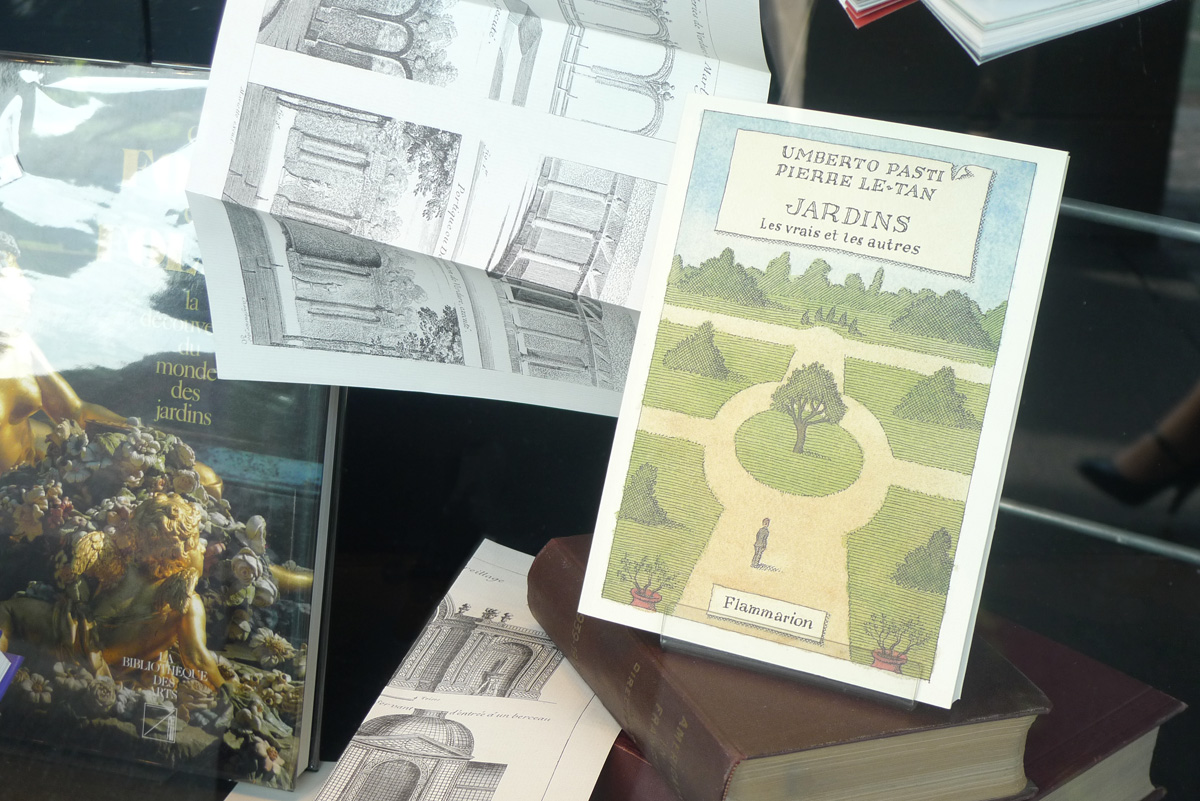 Le voilà ! Pierre Le-Tan, petit homme souriant, est assis à une table de laquelle je m’approche timidement. Il est charmant et nous parlons quelques minutes de ces deux jardinières auxquelles sont destinés les livres.