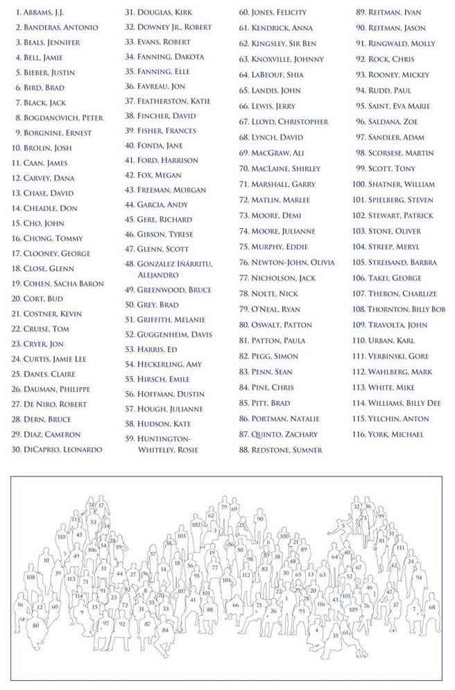 A l’occasion du 100ème anniversaire de Paramount Pictures en 2012, le célèbre studio hollywoodien, dirigé par son président-directeur général Brad Grey, a invité plus de 100 des plus grandes stars mondiales à participer à une photographie historique afin de fêter le passé illustre et l’avenir éclatant du studio centenaire !