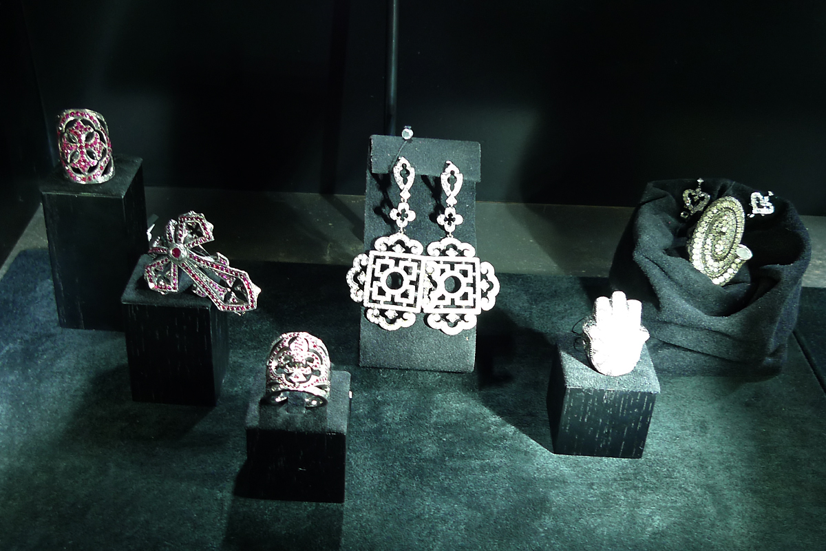 Pourtant, les bijoux baroques, gothiques, art déco, ethniques, d’inspiration orientale, glamour, rock’n roll même, ne se font pas concurrence, mais la configuration des lieux les fait cohabiter dans un foisonnement de créativité et d’audace.