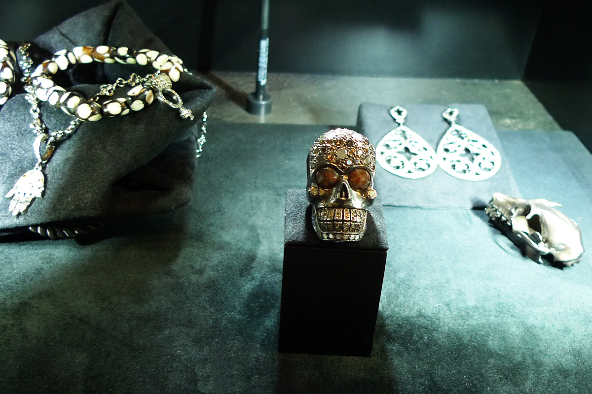 Une vitrine plus loin et la bataille reprend, avec les bijoux guerriers de Kristen Farrell.