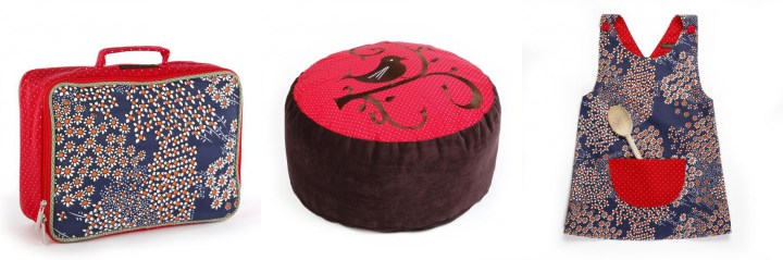 Si en plus elle faisait des objets délicieux pour les enfants et leurs chambres, poupées, tabliers, poufs, coussins, valises, cartables…
