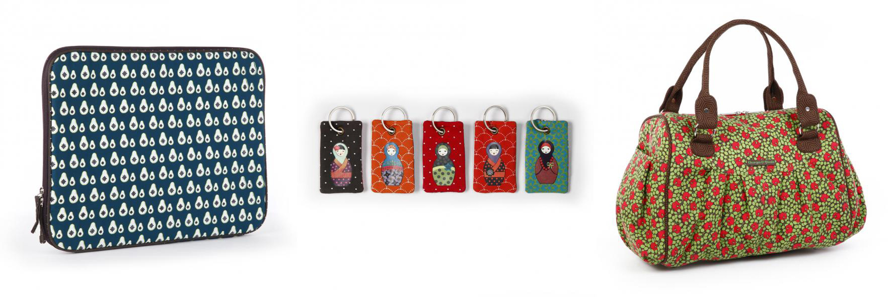 Imaginons que pour assouvir nos désirs régressifs de femmes bohèmes, elle nous offre des trousses, des sacs, des cache et des porte-clés, des plaids, badges, châles, étuis à lunettes, miroirs, carnets, sacoches à vélos, et même des bijoux ou des étuis pour l’ordi !