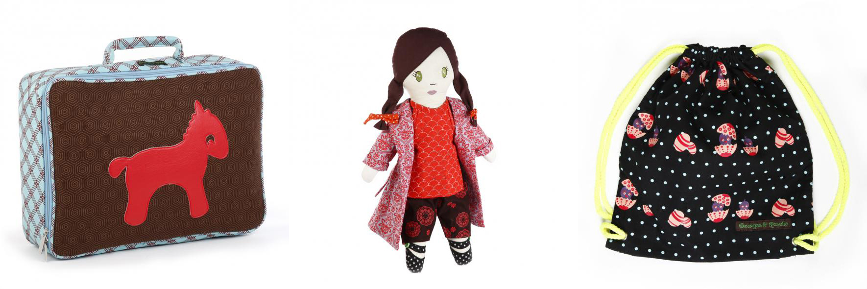 Si en plus elle faisait des objets délicieux pour les enfants et leurs chambres, poupées, tabliers, poufs, coussins, valises, cartables…