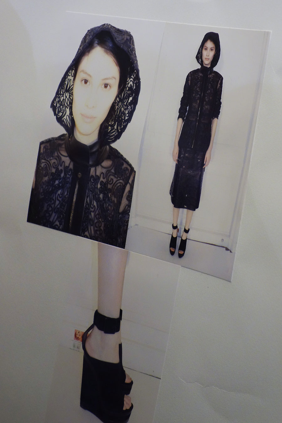 Tiens le manteau noir en dentelle et transparence dont sortait la longue jambe blanche… tu serais divine avec !