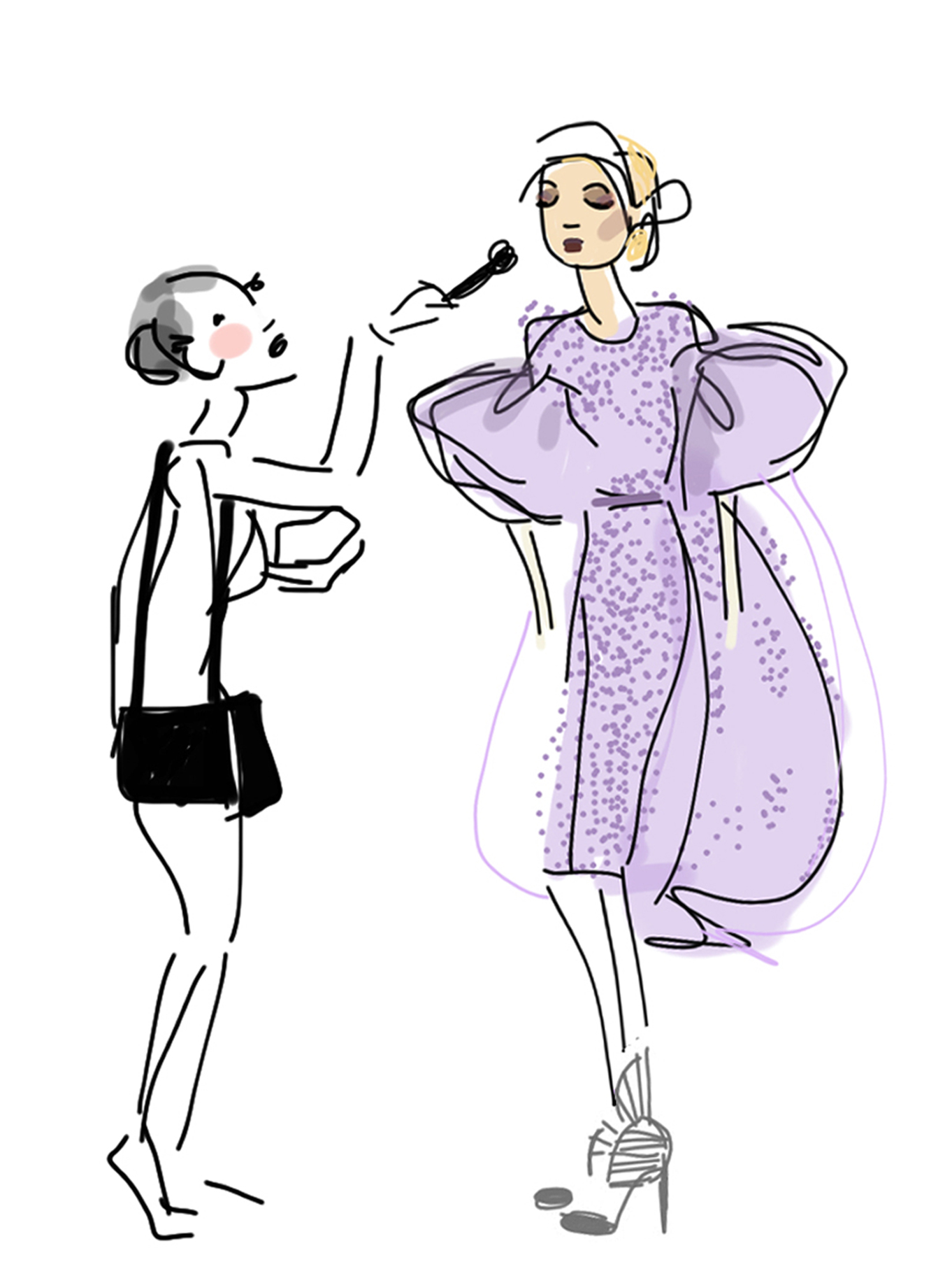 Superbes ces dessins ! Avec les petites phrases en dessous j’imagine très bien les scènes, ça me fait assister un peu à la fashion week même de loin 😉